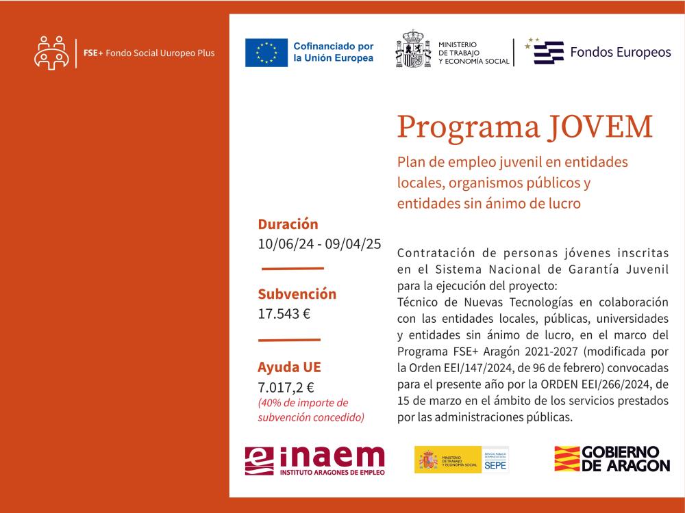 Contratación de personas jóvenes desempleadas e inscritas en el Sistema Nacional de Garantía Juvenil en colaboración con entidades locales, públicas, universidades y entidades sin ánimo de lucro, en el marco del Programa FSE+ Aragón 2021-2027 (modificada por la Orden EEI/147/2024, de 06 de febrero) convocadas para el presente año por la ORDEN EEI/226/2024, de 15 de marzo en el ámbito de los servicios prestados por las administraciones públicas.